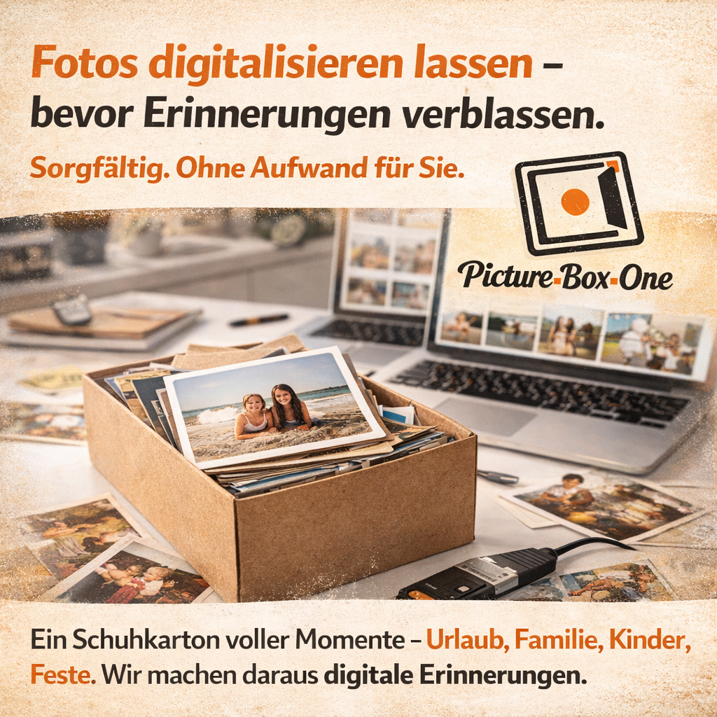 Wir digitalisieren Ihre Papierfotos sorgfältig und unkompliziert – damit Familienmomente, Reisen und Feste nicht im Schuhkarton verschwinden.